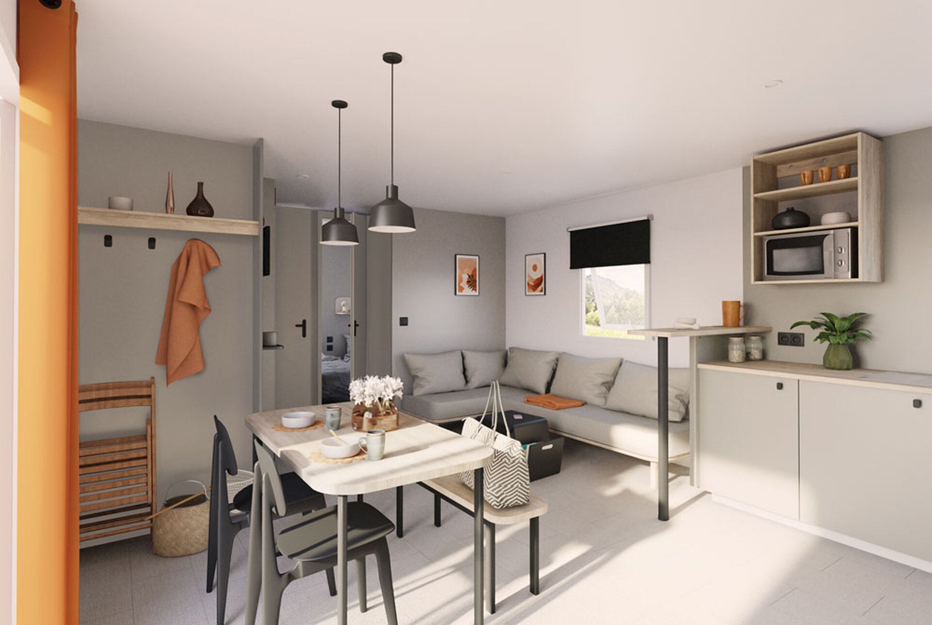 A IRM Aqua 3 é uma casa móvel espaçosa de 38,60 m², concebida para oferecer conforto, funcionalidade e um excelente aproveitamento do espaço, ideal para famílias ou utilização em turismo e lazer. Com dimensões exteriores de 10,70 x 4,00 m, este modelo combina um design exterior elegante com um interior prático e acolhedor.